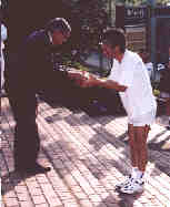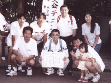 <関塚 実> 今回は監督業だけの予定だったが急きょ選手も兼ねてもらう。 やはり都民大会にはこの人がいないと寂しい。 今回もダプルス、シングルス(オープン)と大活躍。 しかし本人がスクールでいっている様に、サービス・リターンダッシュをしないと 駄目だろうな。それとサービスゲームの進め方をもう1度考え直す必要あり。 まあ監督として本当にご苦労さんでした。