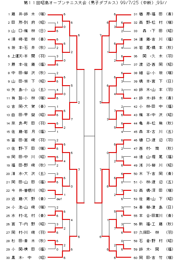 ’99年 昭島オープン 結果報告(暫定版)