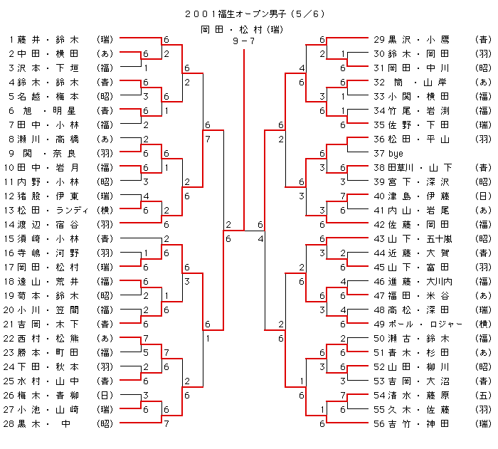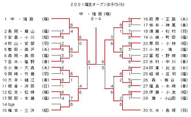 2001年 福生オープンテニス大会結果報告