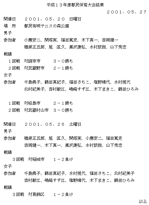 平成13年度 都民体育大会