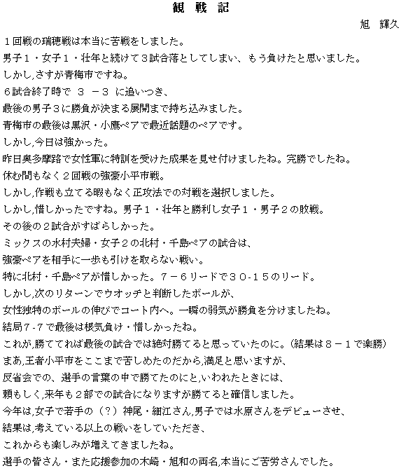 2003年 大田杯結果