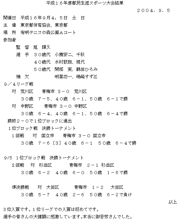 都民生涯スポーツ大会結果報告