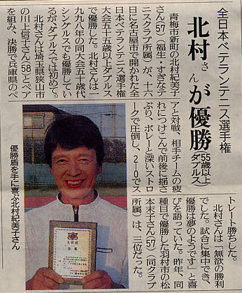 第66回全日本ベテランテニス大会シングルスで青梅市テニス協会の北村さんが優勝しました。