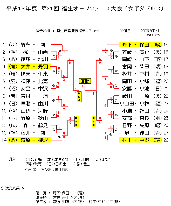 2006年 福生オープンテニス大会結果報告