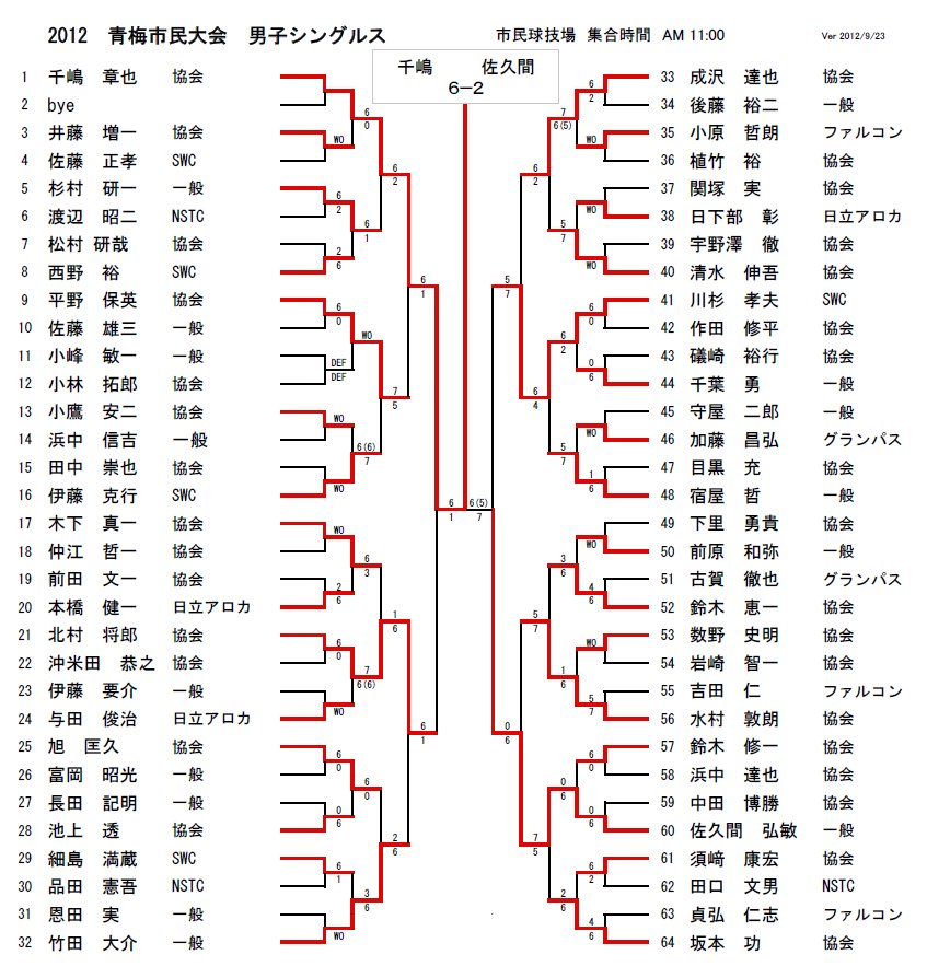 2012年 青梅市民体育大会(シングルス)結果報告
