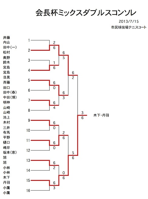 2013年 会長杯ミックスダブルス 結果