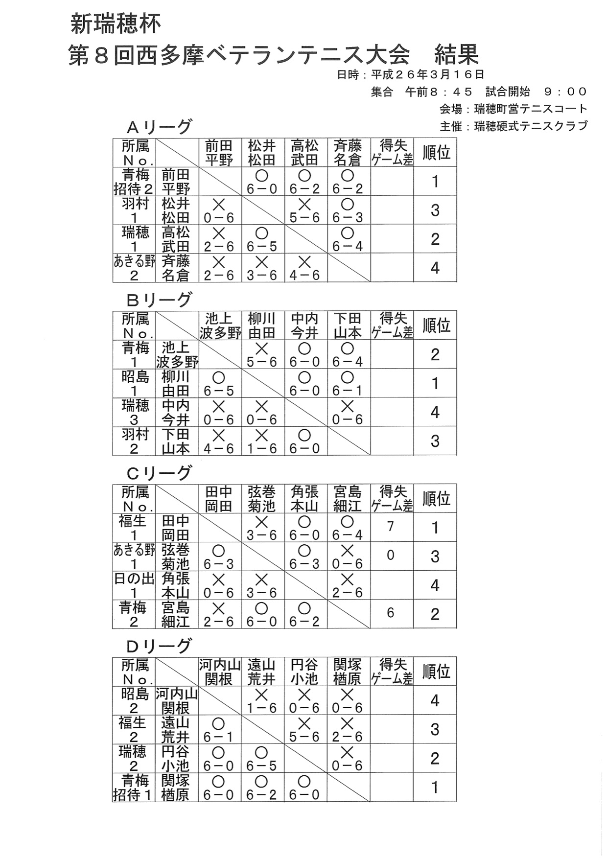 第8回新瑞穂杯西多摩ベテランテニス大会