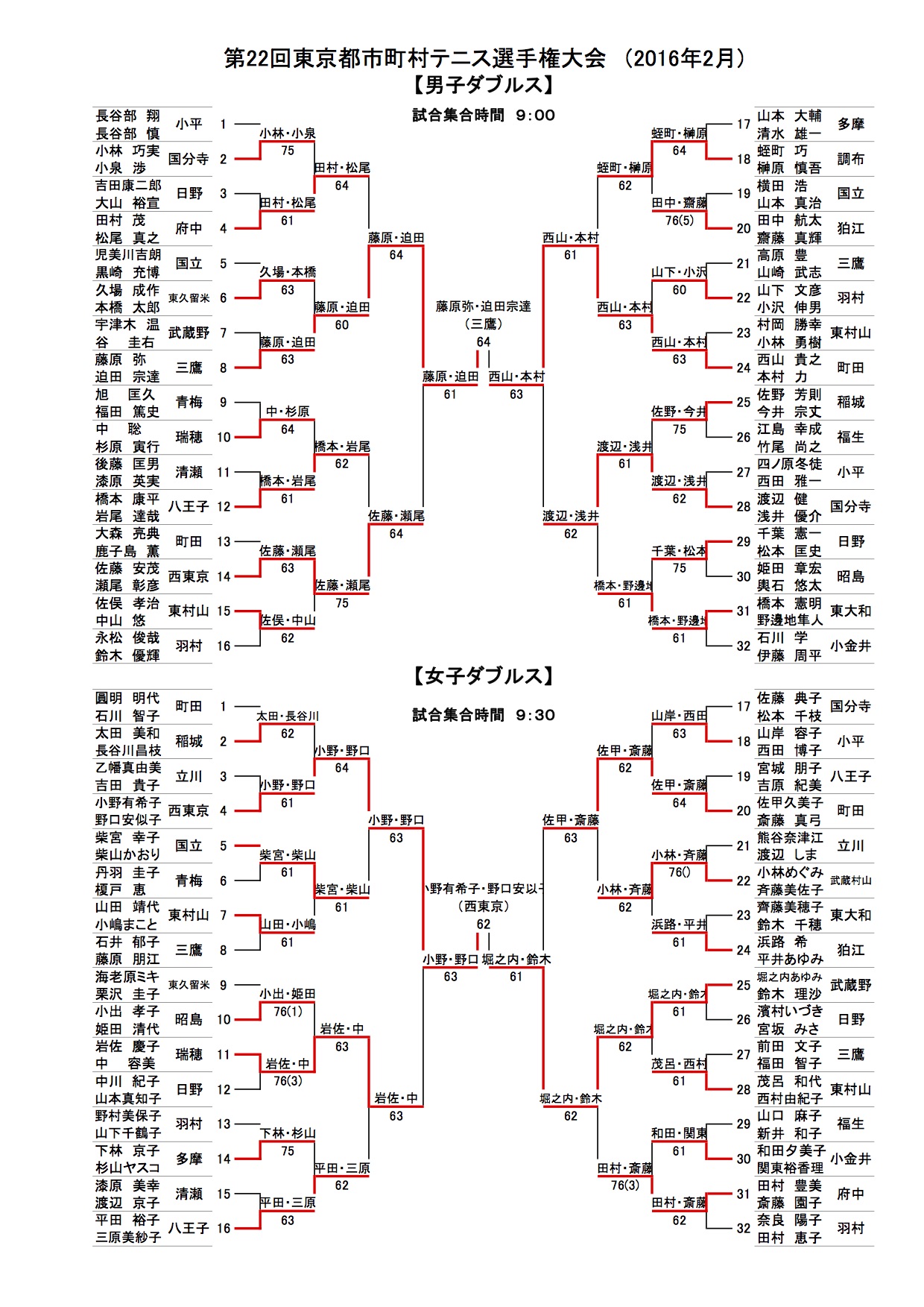 男子、女子ダブルス