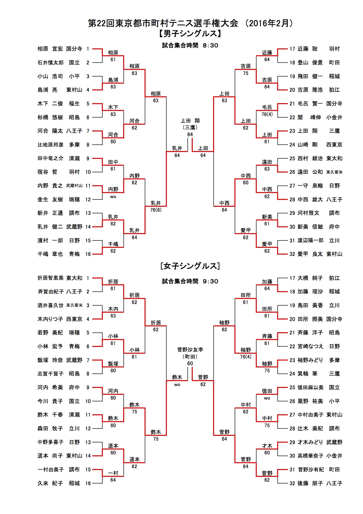男子、女子シングルス