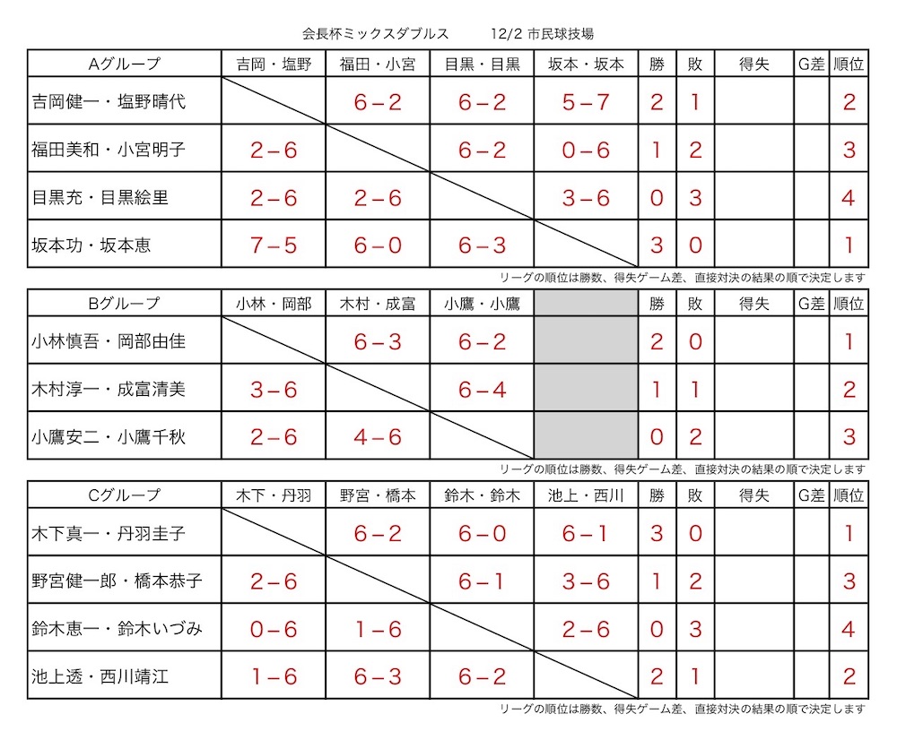 3位(本橋健一・榎戸恵ペア、坂本恵・坂本功ペア)