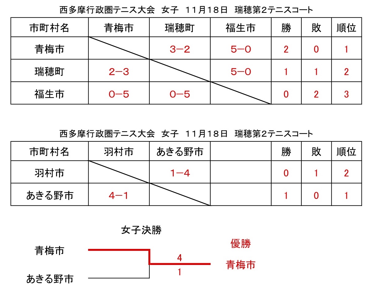 女子優勝 青梅市(瑞穂町営第 2 庭球場)