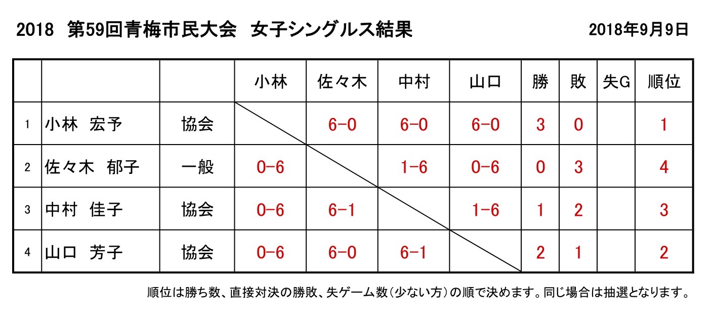 2018年 第59回青梅市民大会シングルスの部(結果)