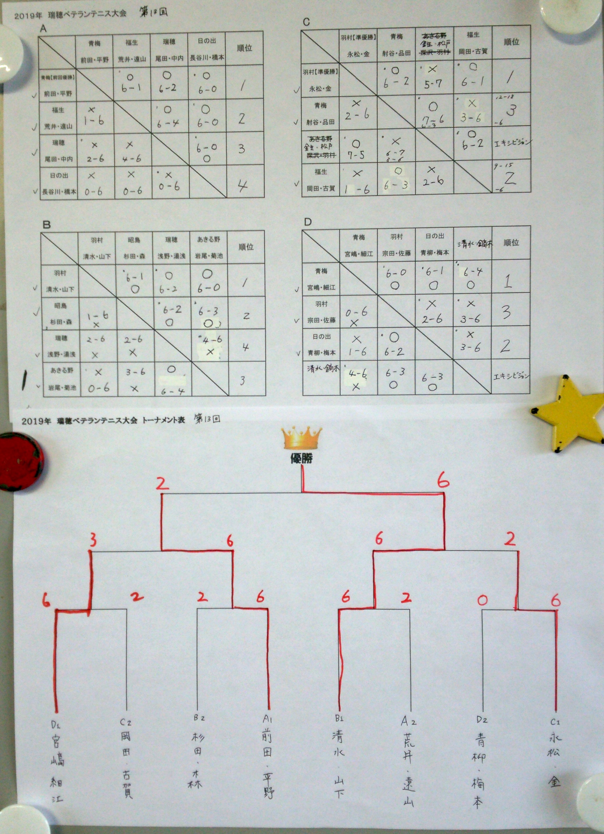 2018年度 第13回「新瑞穂杯」西多摩ベテランテニス大会 結果