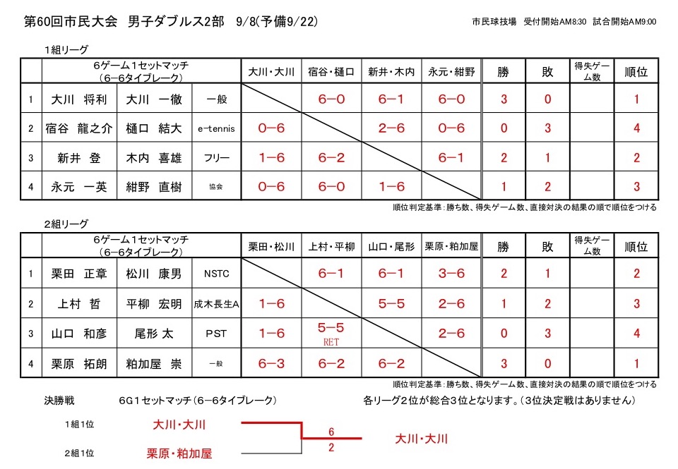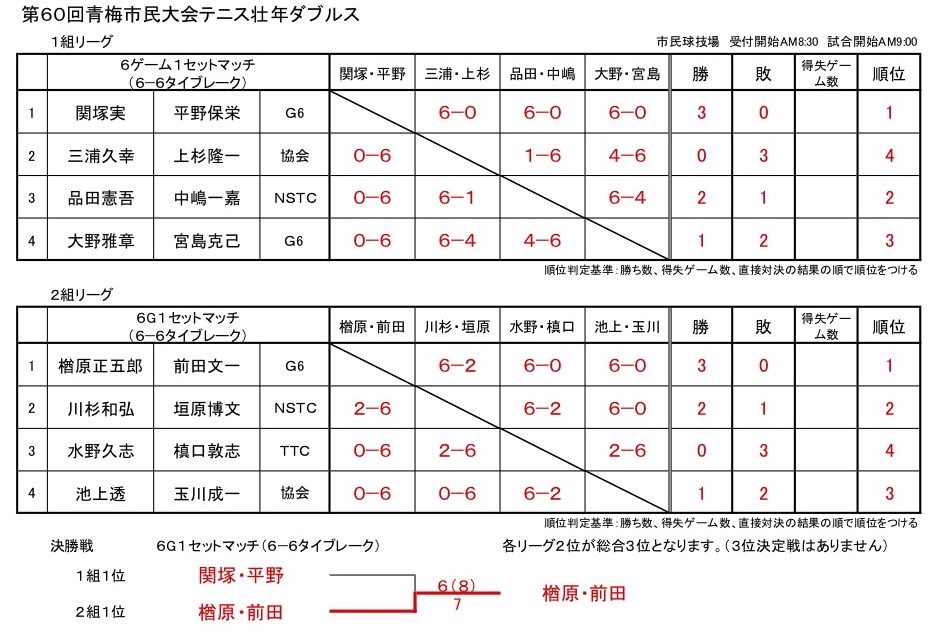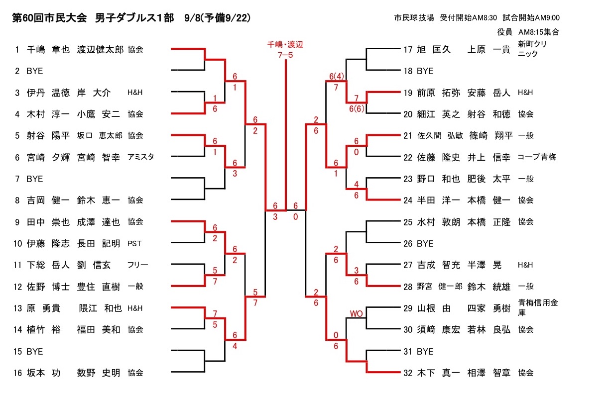 2019年 第60回青梅市民大会ダブルスの部(結果)