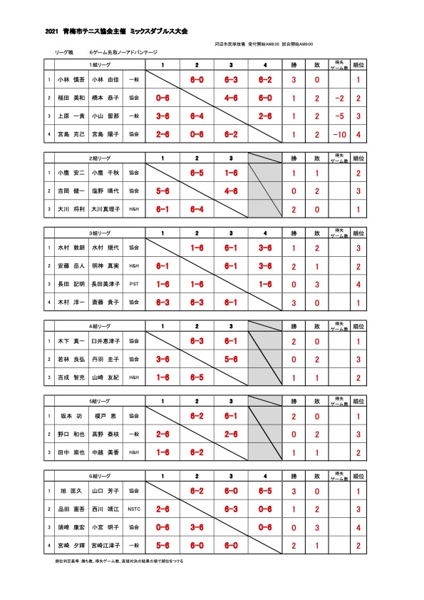 2021年 青梅市民大会代替ミックスダブルスの部(結果)