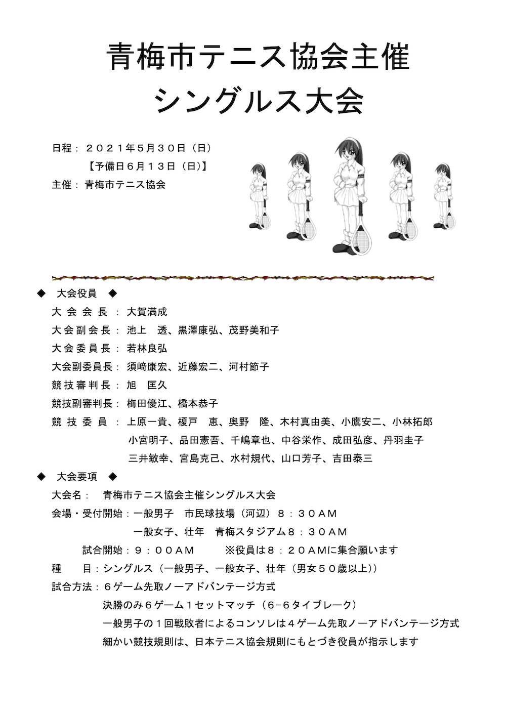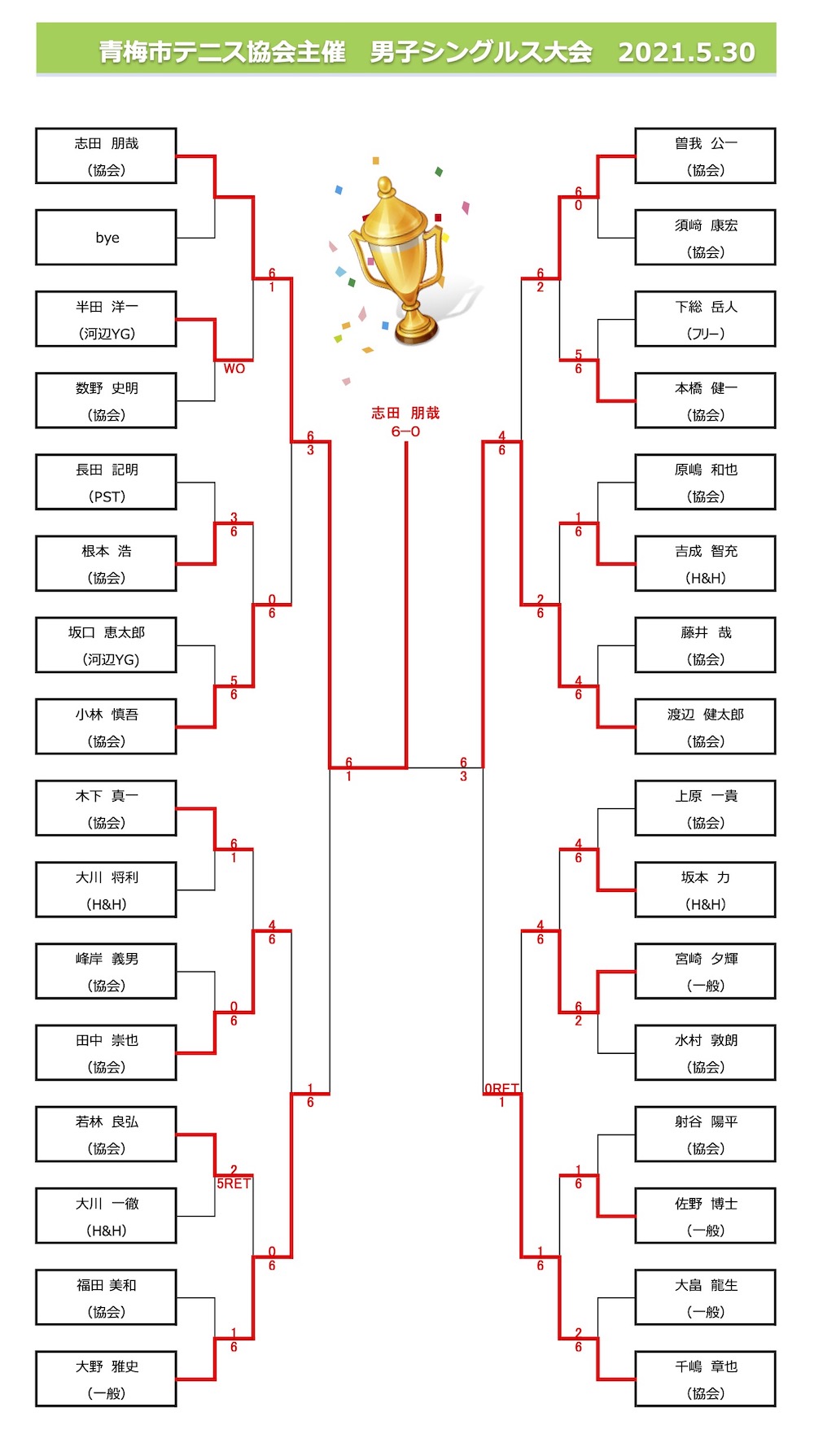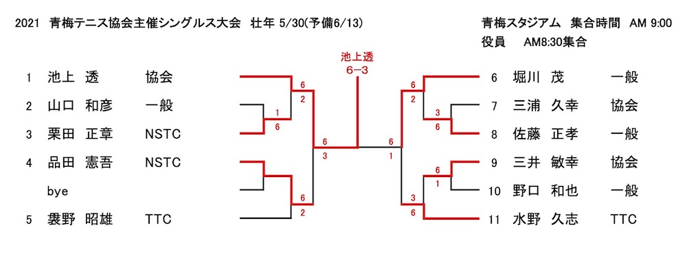 2021年 青梅市テニス協会主催シングルス大会 結果
