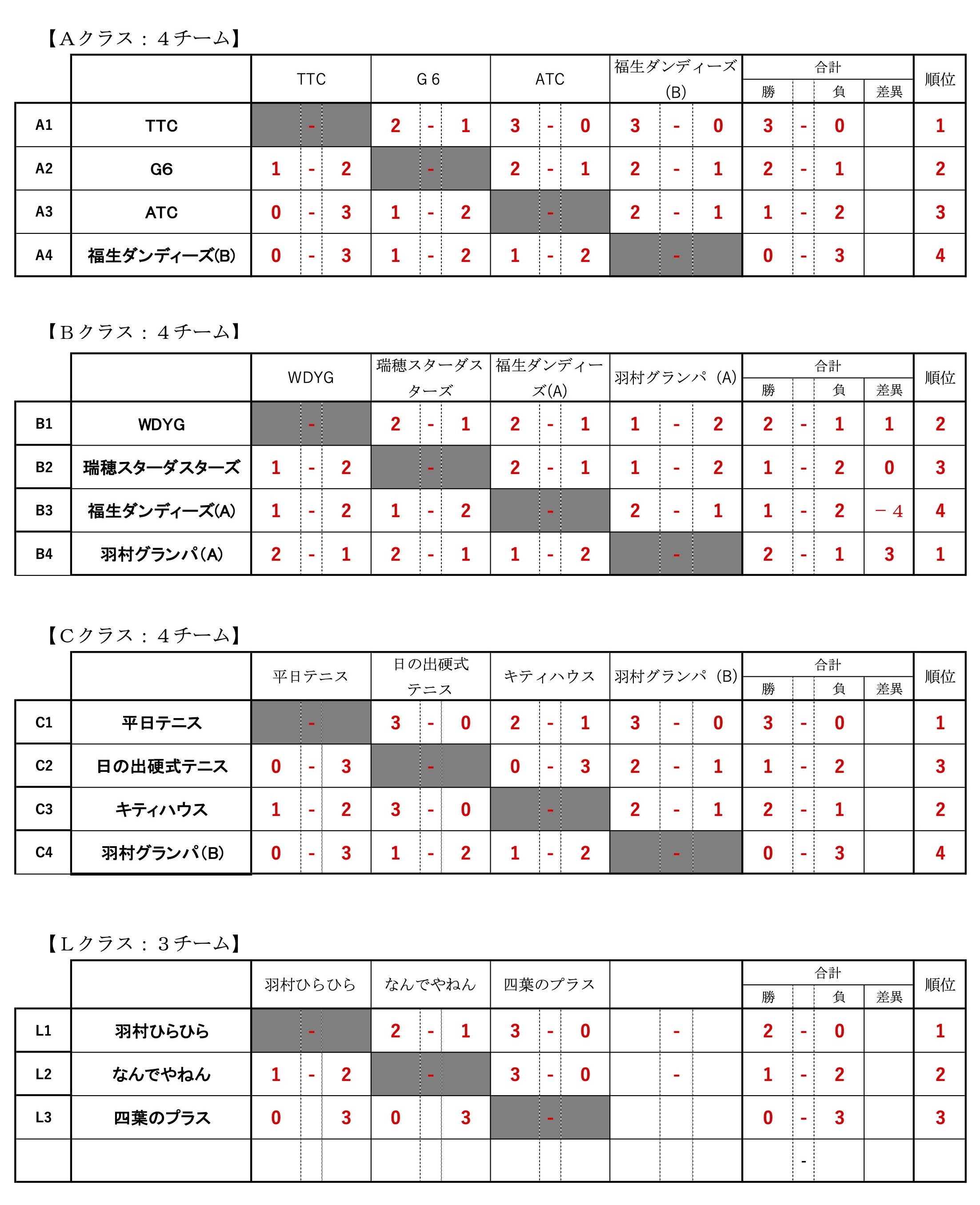 Cクラス優勝(平日テニス)
