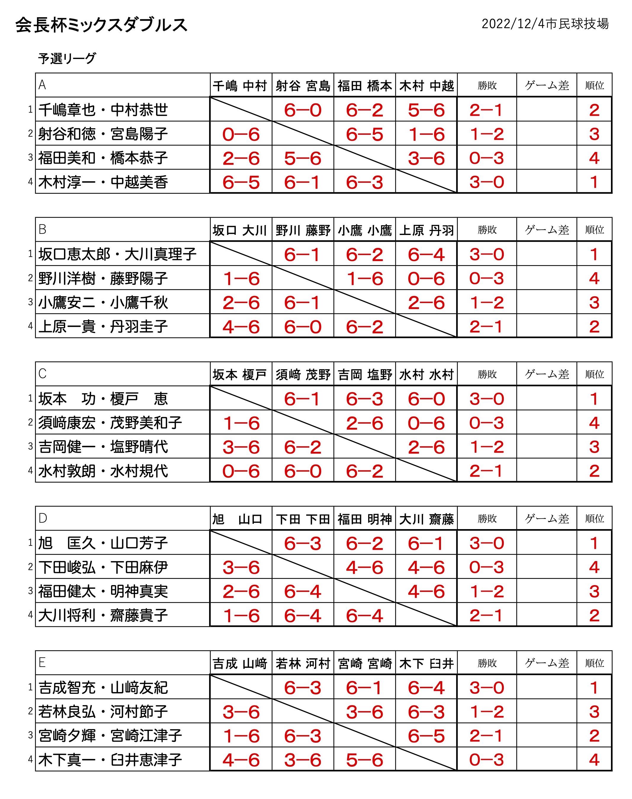 2022年 会長杯ミックスダブルス(大会結果)