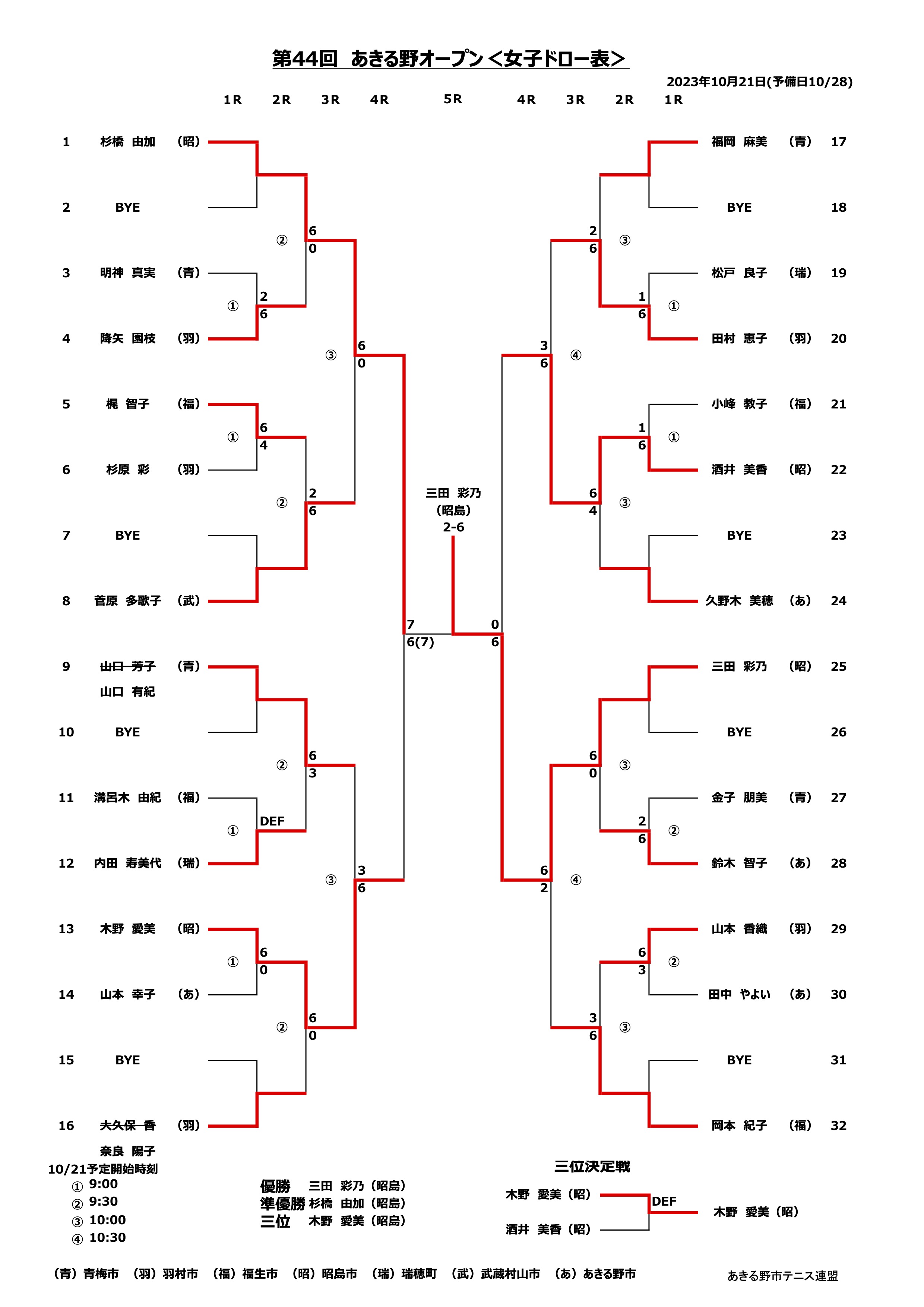 女子シングルス 2023年10月21日(土)