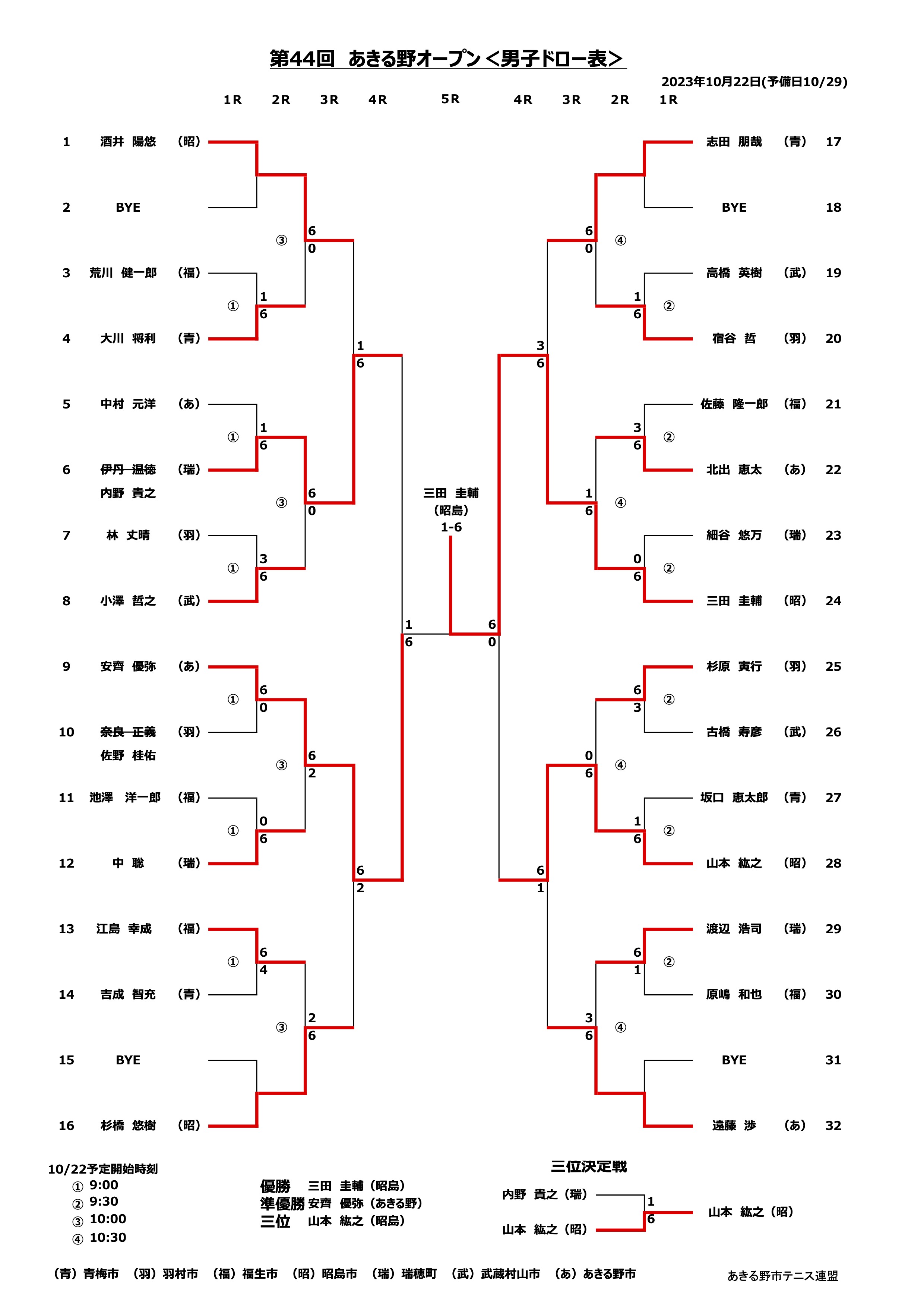 男子シングルス 2023年10月22日(日)