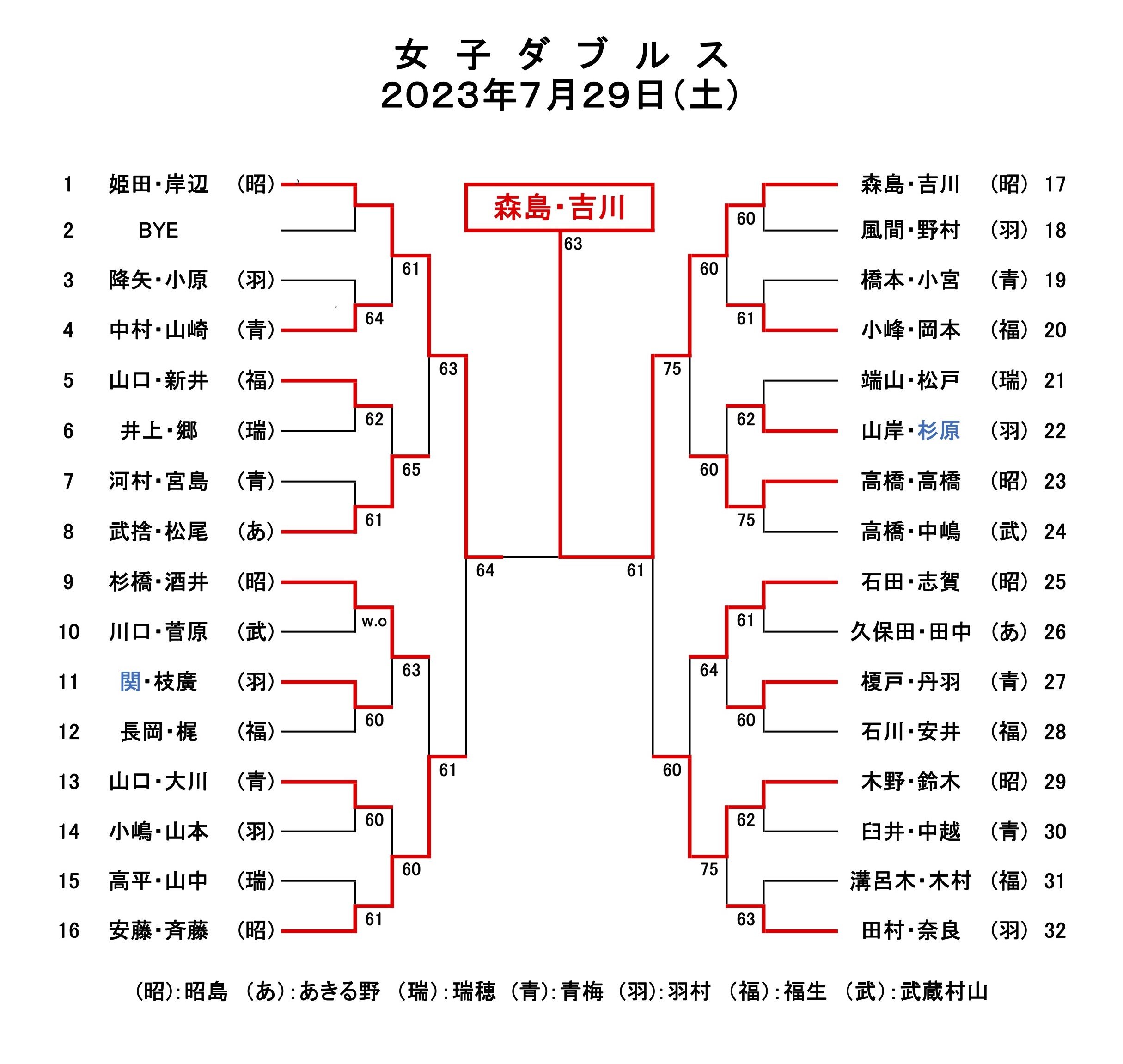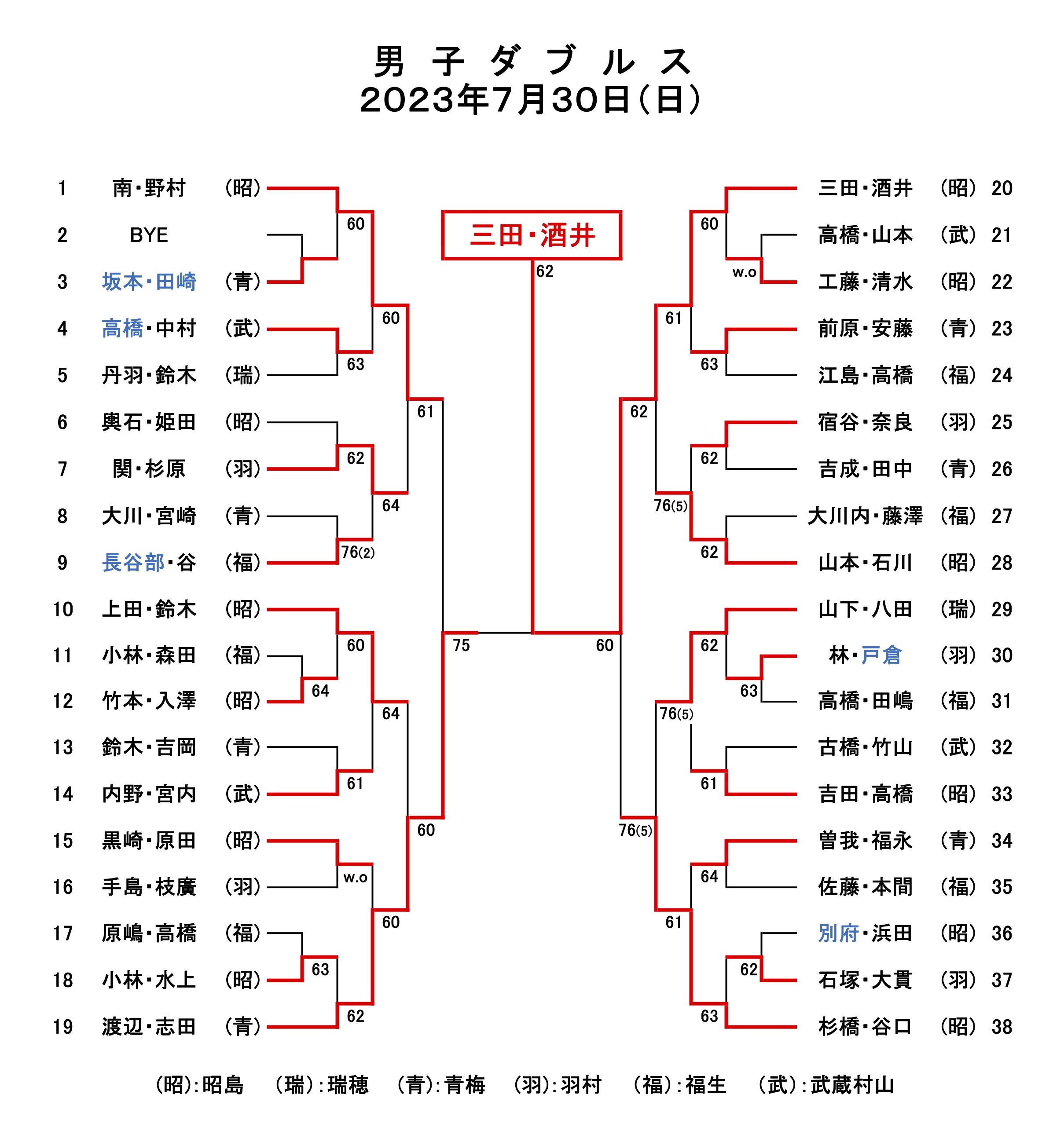 2023年 第35回昭島オープンテニス大会(7月29、30日)結果