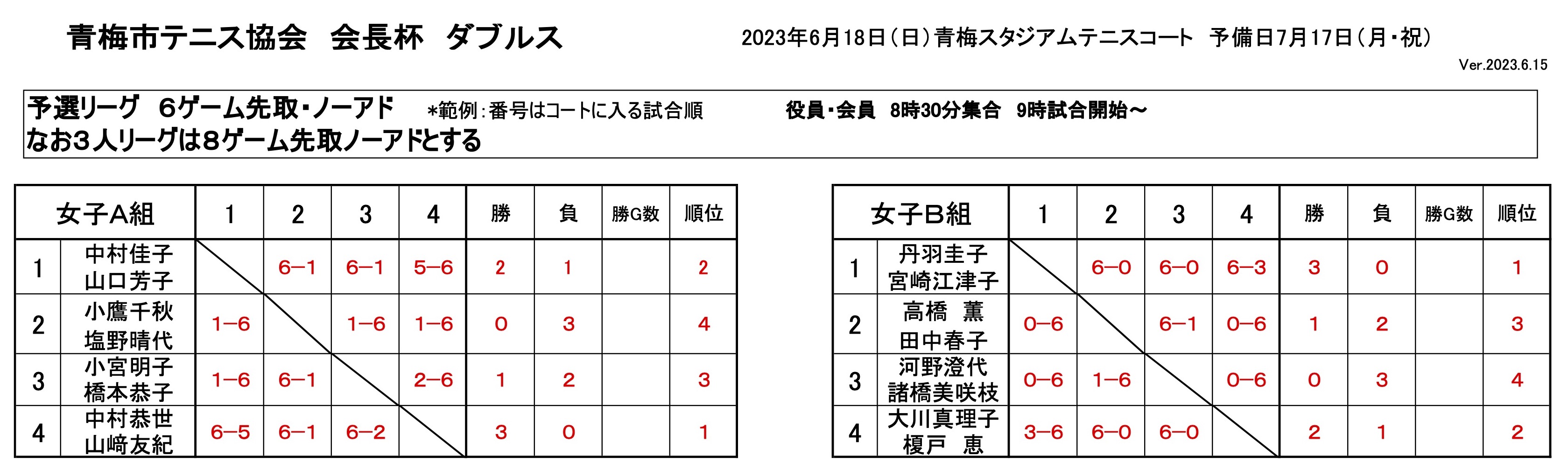 女子予選リーグ結果