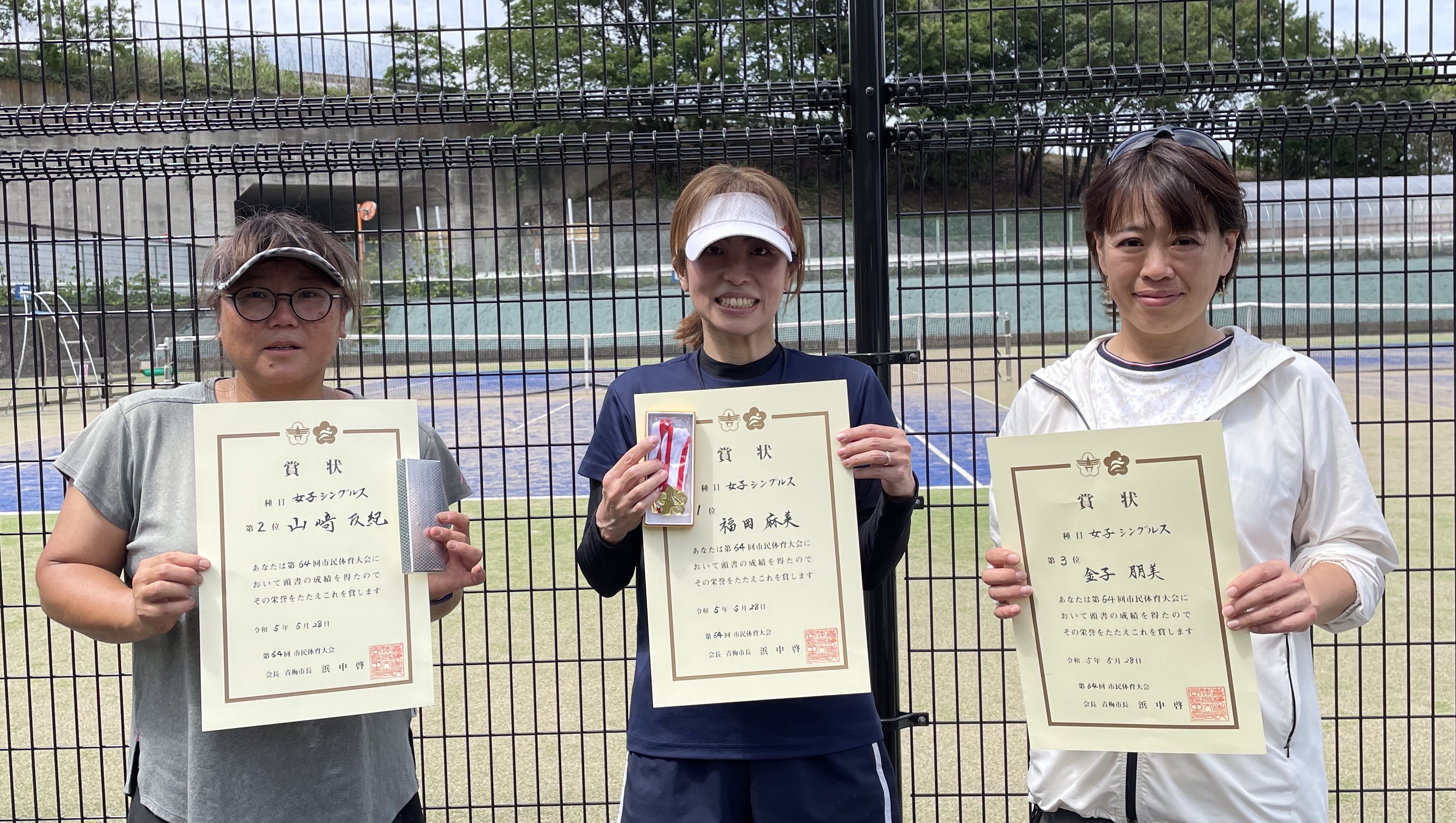 女子準優勝山崎友紀さん、優勝福岡麻美さん、3位金子朋美さん