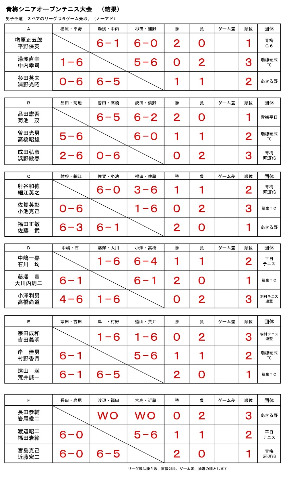 2023年 青梅シニアオープンテニス大会(大会結果)