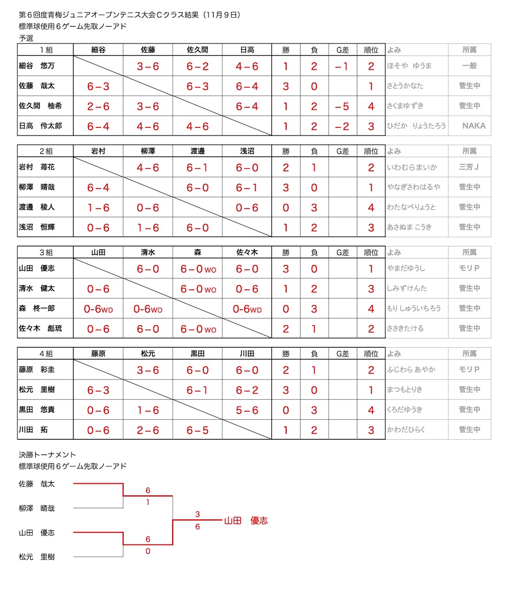 優勝(山田さん)準優勝(佐藤さん)3位(柳澤さん、松元さん)