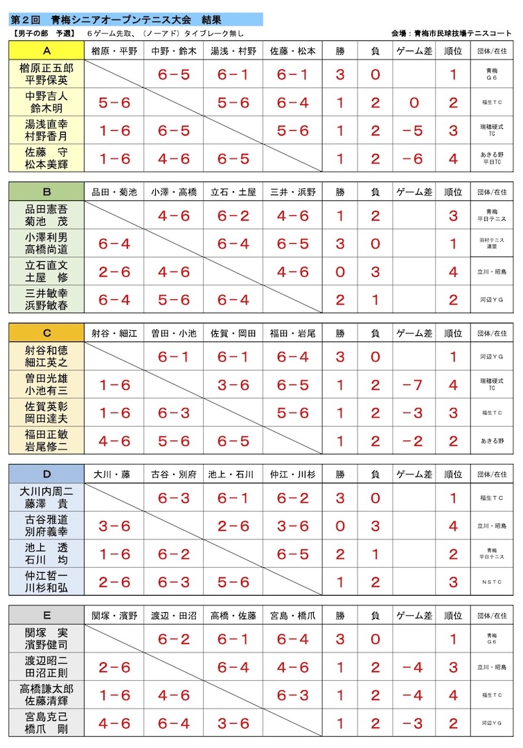 2024年 青梅シニアオープンテニス大会(大会結果)