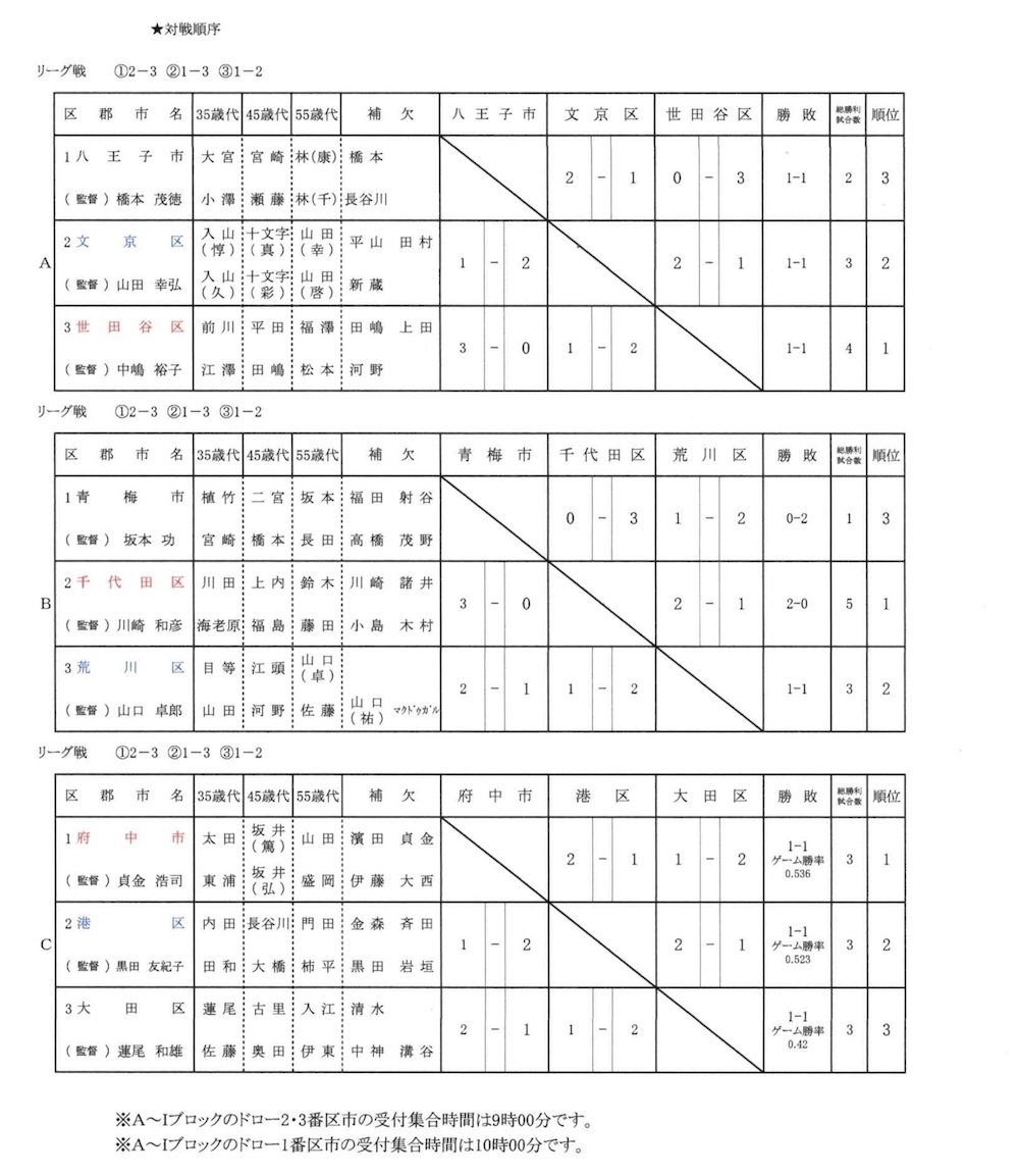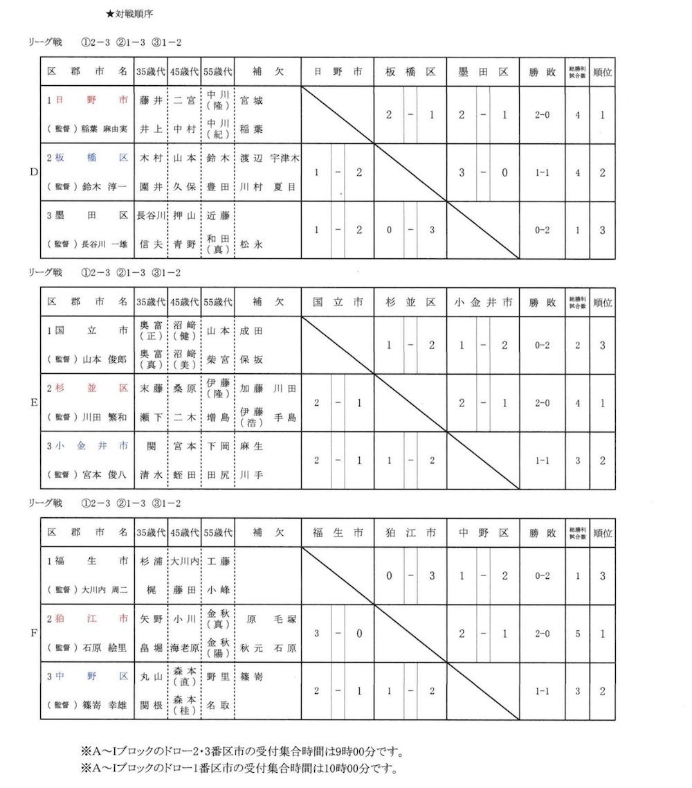 青梅代表の成績 予選リーグ(8/30)有明テニスの森公園Cコート 青梅市 千代田区 0−3 青梅市 荒川区 1−2 これにより3位トーナメントに回ります