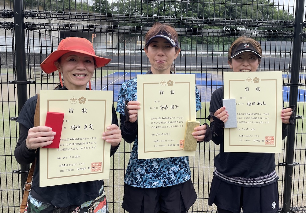女子1部 3位明神真美さん、優勝斎藤園子さん、準優勝福岡麻美さん