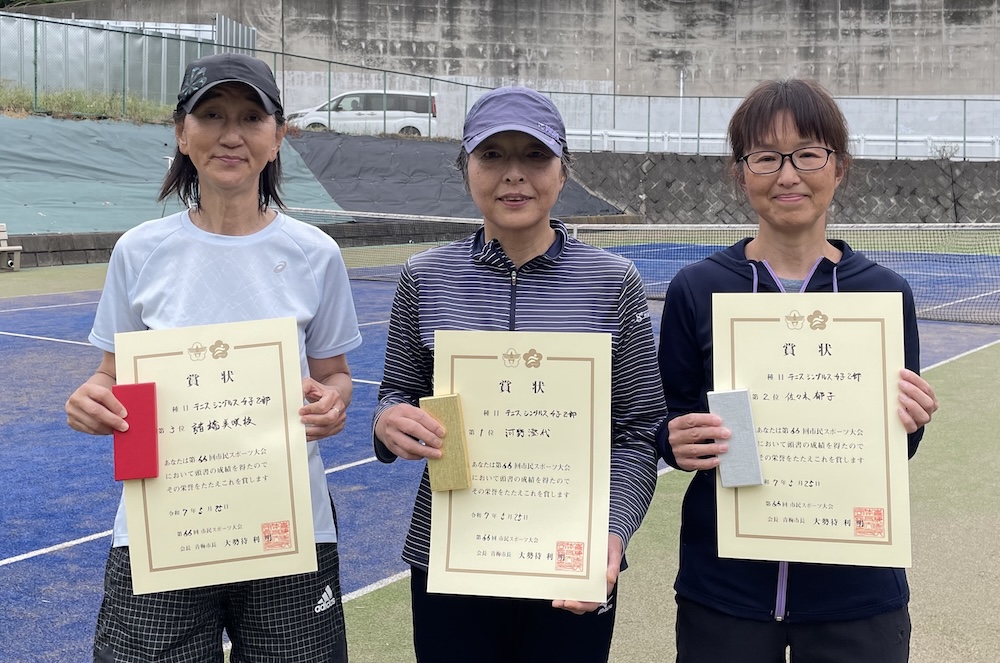 女子2部 3位諸橋美咲枝さん、優勝河野澄代さん、準優勝佐々木郁子さん