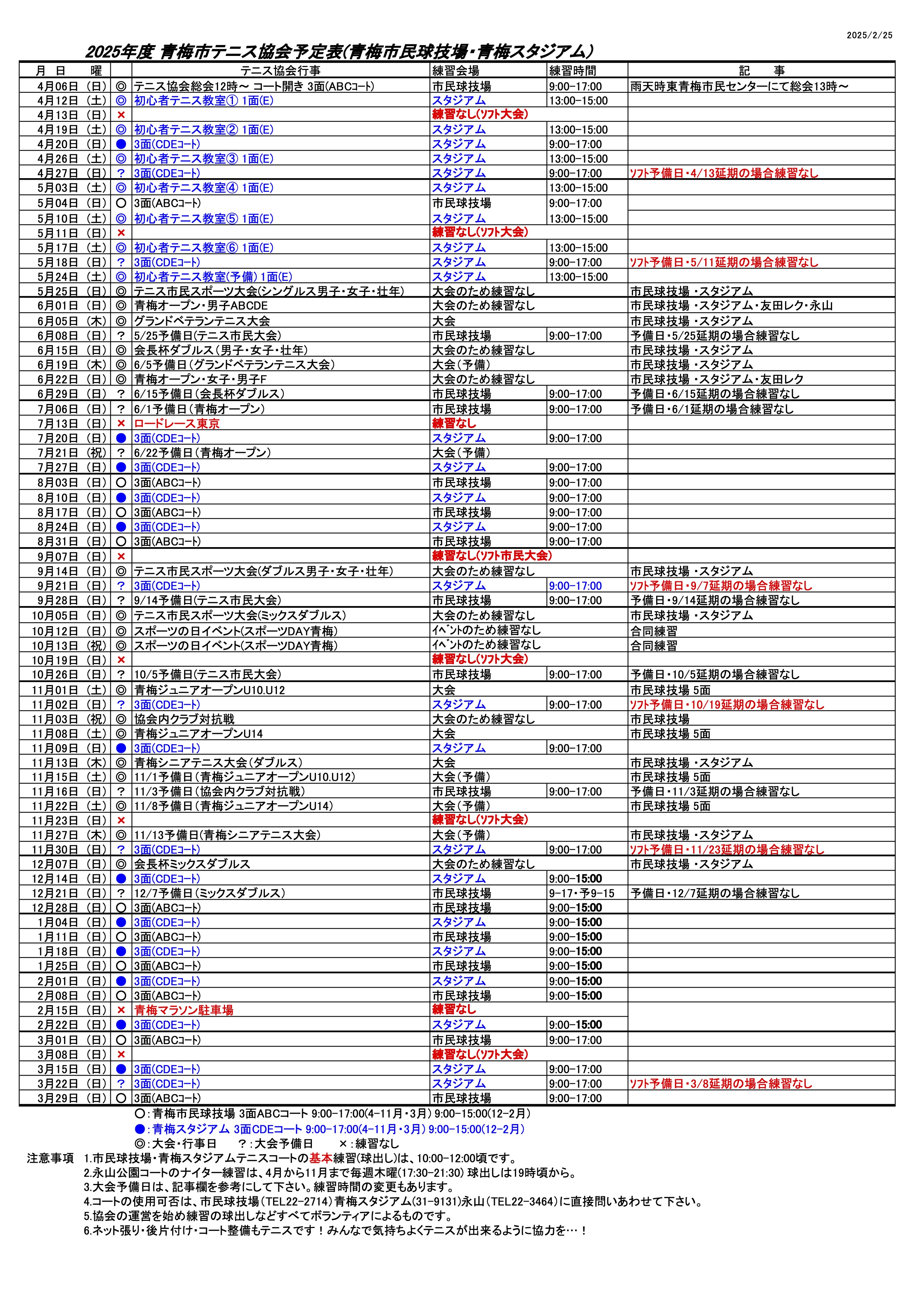 | 青梅市民スポーツ大会(シングルス) | 05/25 | 24/05/26 |